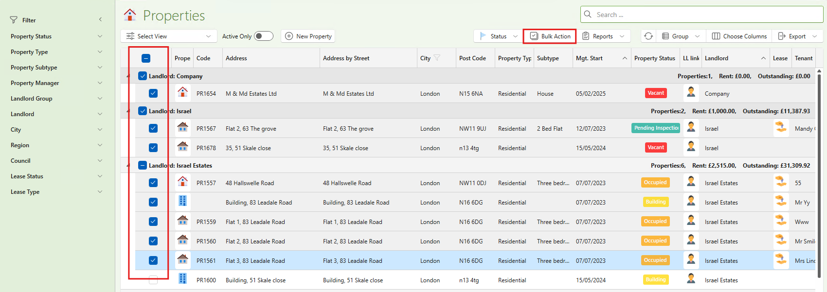 The bulk edit properties page will open and your selected properties will be show on the right.