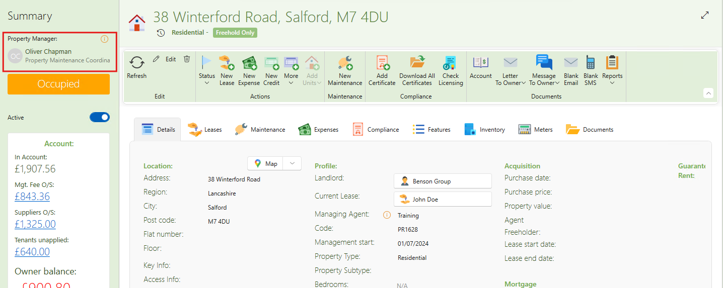 Unlike the Managing Agent role, which refers to the whole company responsible for managing properties, the Property Manager is an internal user responsible for the day-to-day oversight of assigned properties. This helps clarify ownership within your team and improves accountability.
