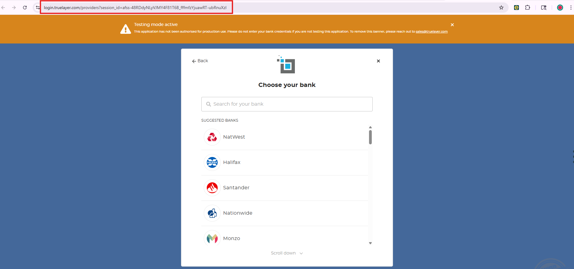 Once he has connected on that device, he can come back to SleekTech and the bank should be connected.