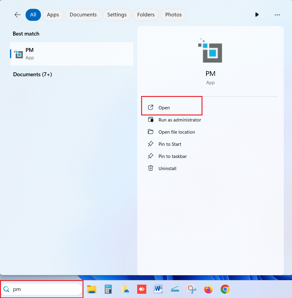 • The software will come up on the list with the name PM and the SleekTech logo. Click on Open.