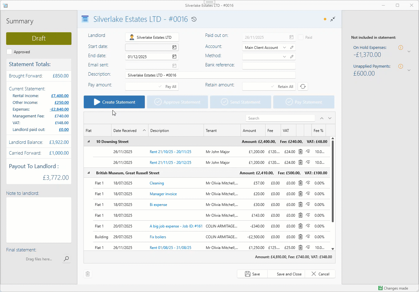 - Upcoming & Overdue – See which statements are due or overdue and jump straight into drafting.